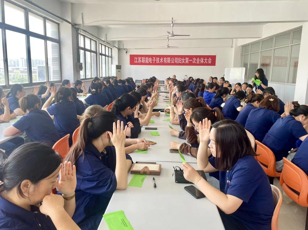 2024年5月23日下午,江蘇聯(lián)能電子技術(shù)有限公司召開第一次婦女全體大會,選舉產(chǎn)生婦女聯(lián)合會第一屆執(zhí)行委員會主席、副主席及委員。揚州城北街道婦聯(lián)主席竇雪出席會議,聯(lián)能電子98名女性職工到場參加了大會。